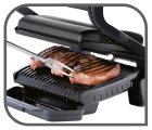 6 voreingestellte Grillprogramme: Burger, Geflügel, Sandwiches, Würstchen, Steaks und Fisch.